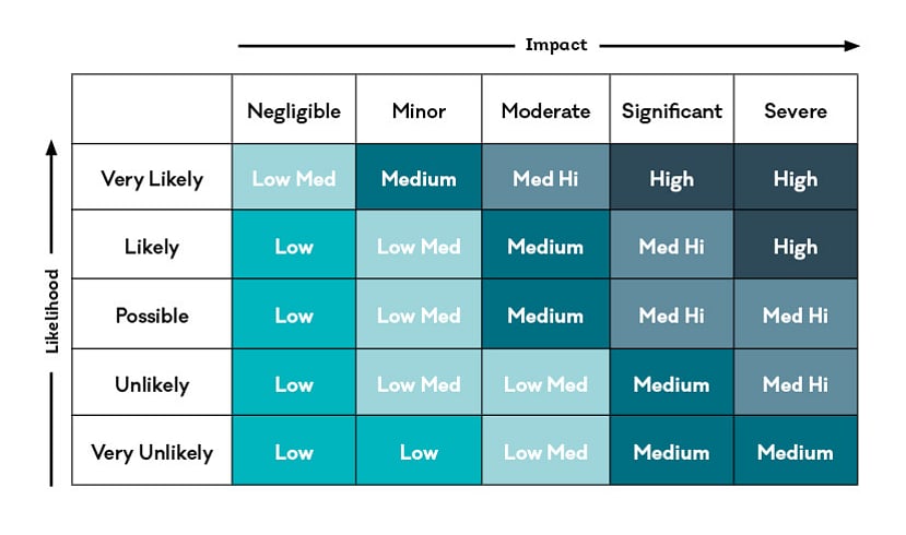 An example of a risk matrix is shown below. As you work through your risk matrix, priority should be given to tasks that would move those activities or attributes away from ‘high’.